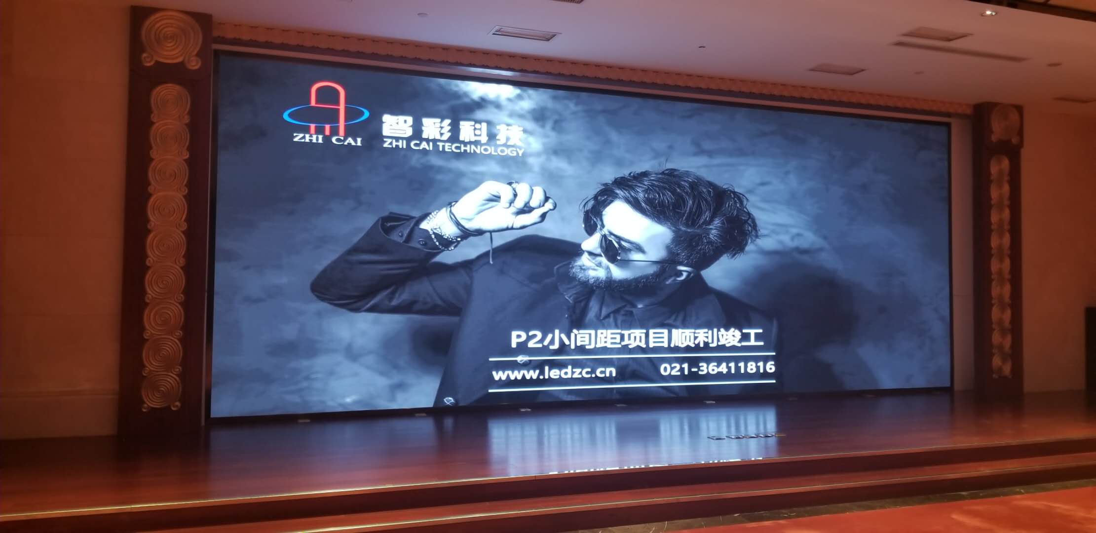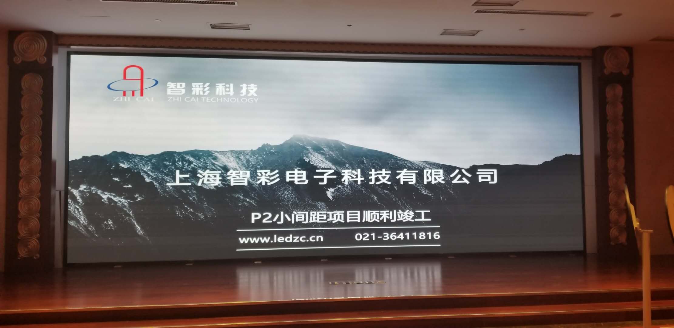 北上海大酒店P2.5室內小間距LED顯示屏由智彩科技承制